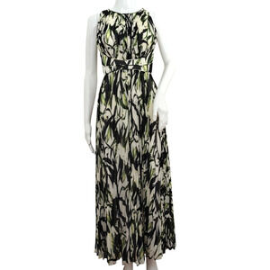Reiss Winnie Printed Pleated Maxi Dress Size 2 Green Leaves Cocktail Evening