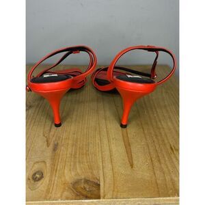 Reiss Women's Bali Leather Square Toe Strappy Heeled Sandals Orange Size 6
