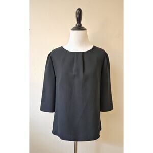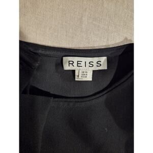 The Reiss Women's Grace Black Button Detail blouse in size US 6 EUR 38 is a stylish and basic top designed for women. Made of polyester, this blouse features a solid black color with button accents and a high neckline. With 3/4 sleeves, this blouse is perfect for a classic and versatile look that can be paired with a variety of outfits for different occasions. The Reiss brand is known for its quality and trendy designs, making this blouse a must-have for any woman's wardrobe.