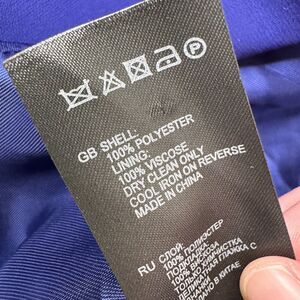 Description: Reiss single breasted blazer in electric blue. Polyester shell, viscose lining. Really interesting and cool, sleek paneling and construction. Small shoulder pads.