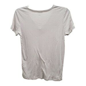 Reiss Women's Pale Gray Chiffon Trim Soft Short Sleeve Basic V-Neck Top Size XS