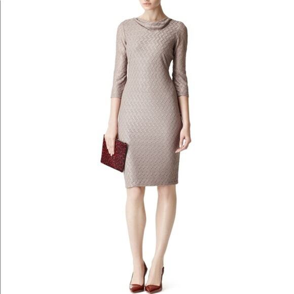 Reiss | Women’s Tatiana Beige & Gold Shimmer Dress Key Hole Scoop Cowl Neckline