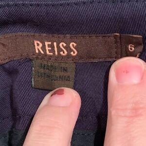Reiss wide leg pants in navy. Zip and button closure. Women's size 6. Gently used with no flaws.
