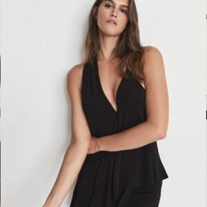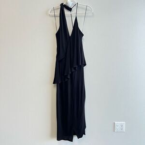 Reiss Xena Asymmetrical Midi Strappy Open Back Cocktail Dress Black UK 12 US 2