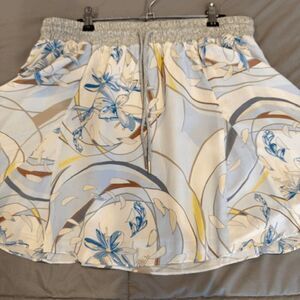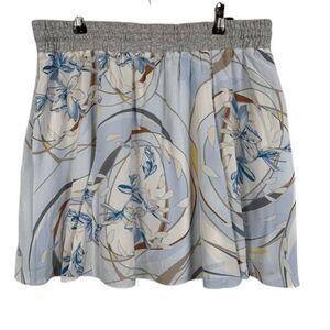 Reiss Yasmine Swirl Print Mini Skirt in Blue / Gray Drawstring Waist Size 10