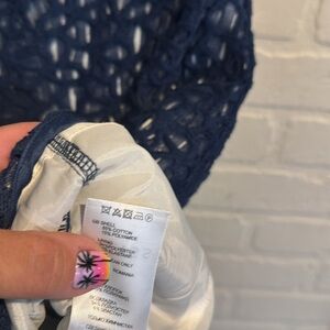 Reiss dress navy Blue Textured lined open knit size 6 cap sleeve