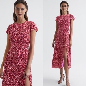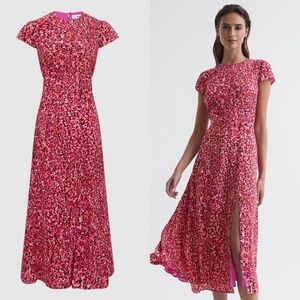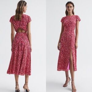 Reiss leopard floral open back slit midi dress FINAL PRICE NO OFFER CONSIDERED