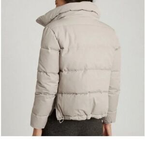 Reiss Dax Puffer Jacket Side Zipper Large in Stone NEW MSRP $545