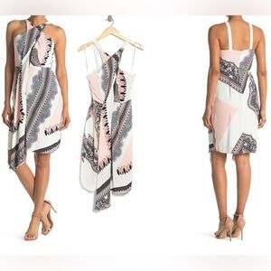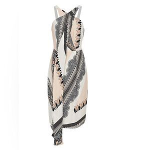 This sophisticated and flirty Reiss Hope dress is a summer wardrobe stunner! Featuring a halter-neck wrap front, asymmetrical handkerchief hem, and an abstract scarf print, it’s designed to turn heads. Inspired by sarongs, this effortless occasion dress has chic back straps and a sleek pencil silhouette at the back.