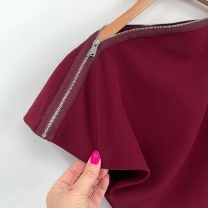 Reiss Josie Stretch Weave Midi Dress Short Sleeve Zipper Detail Women 6 Burgundy