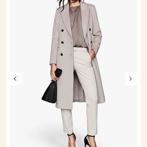 Size 10, silver gray.A timeless longline coat from Reiss, the Maddie style is cut from a wool-heavy mix for unbeatable warmth that doesn't create too much humidity, with a smooth lining to prevent any itching and a back vent for easier movement. Slit pockets and three buttons down the front keep it looking sleek, as does the classic collar.