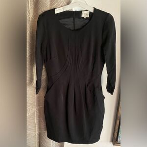 Reiss Pleated Front Black Dress Back Zip Closure Side Pockets Stretchy Sz 6