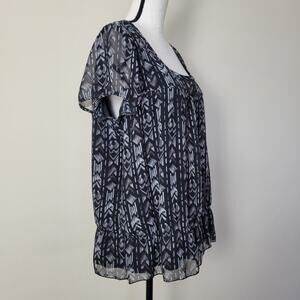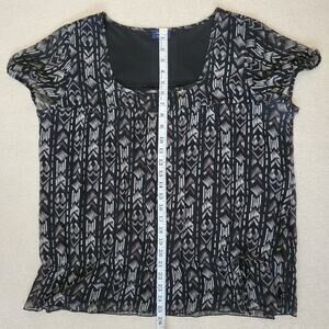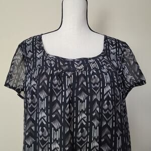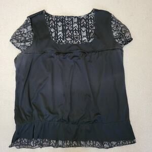 Reitmans Plus Petite 18 Pullover Top Lined Body Sheer Cap Sleeve Black White