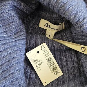 Reitmans Sweater Women L Blue LS Turtleneck Slits Preppy Boho Monochrome Cottage