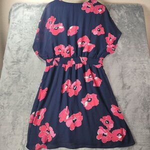 Reitmans Women XL Navy Floral Dress DolmanSleeve CinchedWaist Lined Garden Party