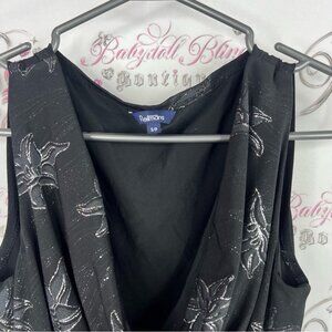 Chic black tank with floral pattern. Draped neckline adds elegance. Small.