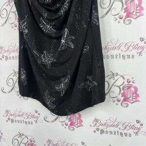 Reitmans tank top sparkly glitter flowers y2k scoop neck Black Floral Tank Top