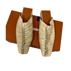 Rejina Pyo George Cream Ruching Ruffles Mules Size 7