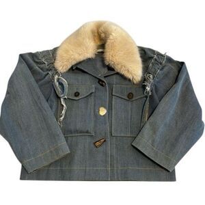 Rejina Pyo size large Daphne faux fur trimmed denim jacket - EUC