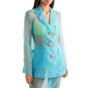 Rejina Pyo Woman Sophie Organza Blazer Turquoise UK10