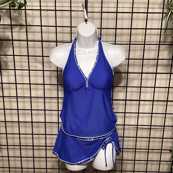 Get ready to enjoy the sun and sand with this stylish Rekita Tankini and Skort set.