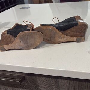 Rare Stylish brown and black wedge ankle boots perfect for any occasion. These shoes offer a chic design with a comfortable fit.