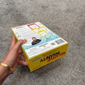 Enjoy endless laughter with the Relative Insanity card game. Featuring a vibrant yellow design, this game is perfect for family gatherings and parties.