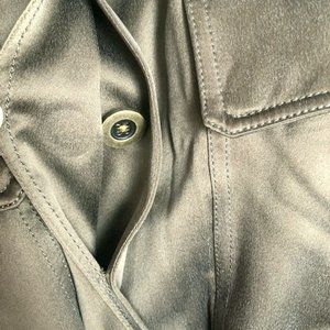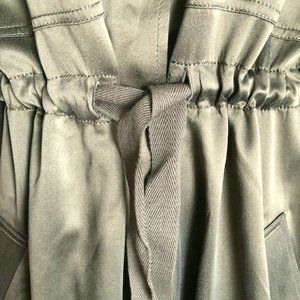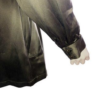 This luxe 100% silk shirt jacket by Relative Pi is the perfect blend of soft sophistication and utilitarian style. Done in a deep olive green with a silky sheen, it features a flattering drawstring waist, concealed front buttons, four pockets (yes, four!), and military-inspired epaulets on the shoulders. Button cuffs and high-end construction add polish, while the fluid drape keeps it effortlessly chic.