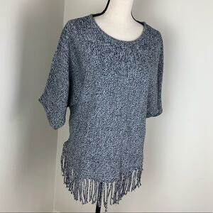 Relativity Black/White Fringe Batwing Boho Sweater Sz Small