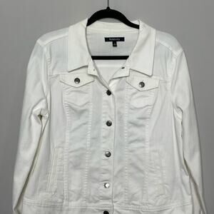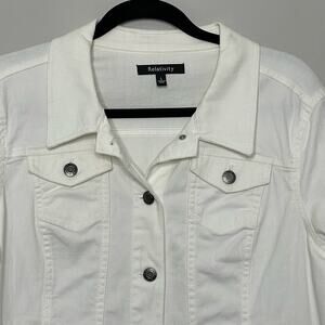 Relativity Denim Jean Jacket Button Down Long Sleeve Breast Pockets White L NWT