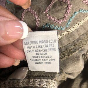 Relativity Embroidered Cotton Boho Top Womens Size Large Olive Green V-Neck