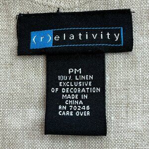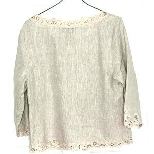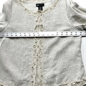 This Relativity linen jacket with lace trim & 3/4 sleeves is in excellent pre-owned condition.