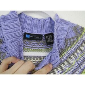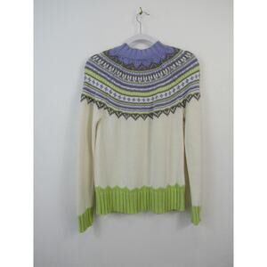 Relativity Medium Cream Purple Green Fair Isle Printed Pullover Sweater Mockneck