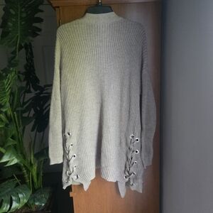 Relativity Oatmeal Cardigan Sweater Open Front With Lace Up Sides.