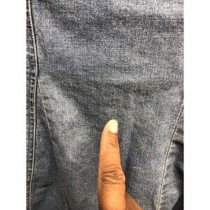 Relativity Panel Mini Denim Skirt Size 18 Distress Wash preowned stains pointed out on the front of skirt