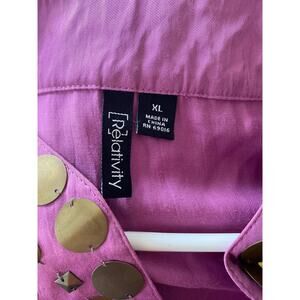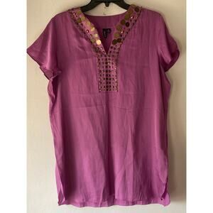 Relativity Purple Embellished Top SZ XL Cotton Blend Short Sleeve Ethnic Career