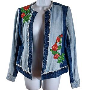 Relativity S Denim Beaded Floral Jacket Boho Beadwork Festival Hippie Western
