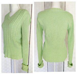 Relativity Sweater Small Vintage Lt Green V-Neck Ribbed Cuffed Lagenlook Preppy