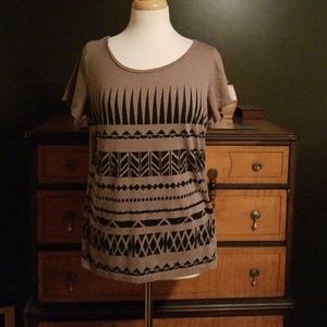 Relativity taupe cotton top with black design on front Great in the summer with a pair of black shorts