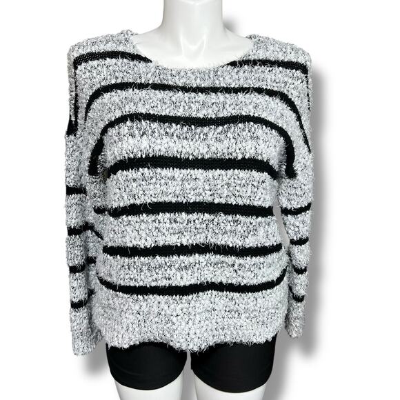 Relativity Womens Chunky Knit Sweater Pullover Crop Top Black White Stripes XL