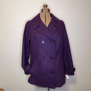 Chic and cozy double-breasted lined peacoat with pockets. Perfect for versatile styling.