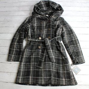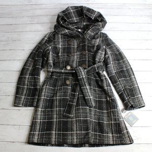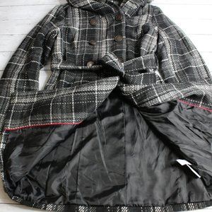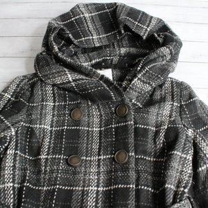 Relativity Women's Long Winter Coat Size XS Black Gray Plaid Wool Blend