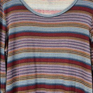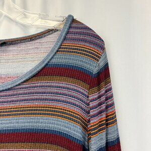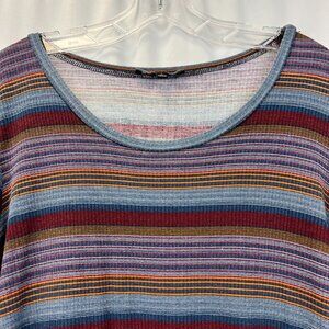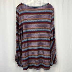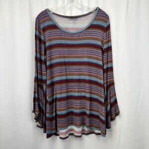 Relativity Womens Multicolor Striped Bell Sleeve Scoop Neck Blouse Top Sz Large