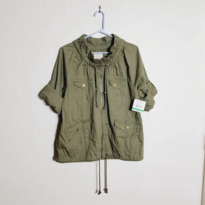 Relativity Womens Olive Green Drawstring Jacket Pockets roll tab sleeves Large