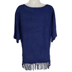 Relativity Womens Sweater Small Fringe Dolman Short Sleeve Blue Black Heathered