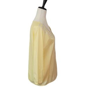 Relativity Yellow Embroidered 3/4 Sleeve Sheer 100% Cotton Summer Blouse Size S
