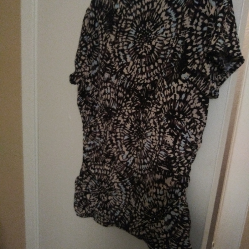 Medium petit lady/woman mixed colors blouse(tan, blue & black). Size: MP/PM. Preowned. Like new.