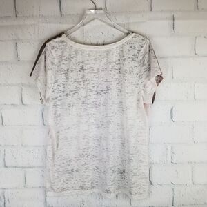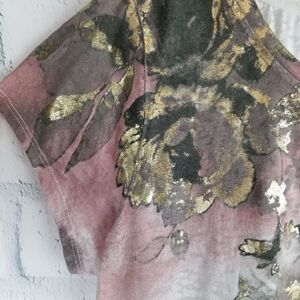 Pretty mauve, white, and gray tee. Graphic on front. Back is burnout white. Size L. Approximate measurements are pit to pit 23". Length is 26". Sleeves are 6"