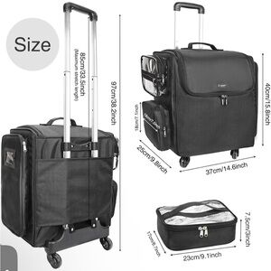 Multi-Compartment and Large Capacity: With 2 Pcs clear makeup bags for hair accessories, can be used in combination. Pockets inside and outside, a special clear pocket for tissue for easy access. Lockable double zippers and card holder. The cosmetology case on wheels has a large capacity, which can meet the storage needs of a professional hairstylist.
