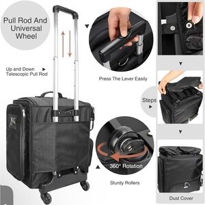 Sturdy Four 360 Degree Spinner Wheels: The hair stylist travel case has 4 wheel spinners that rotate 360 degree multi-directional for a smooth roll, wear-resistant and durable. A locking retractable push/pull handle.